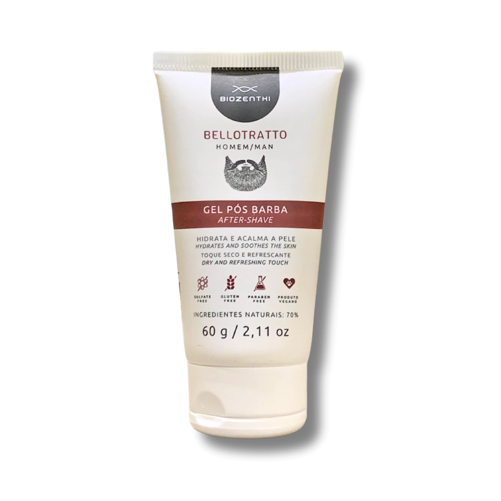 O gel pós-barba Bellotratto foi formulado com ativos calmantes e anti-inflamatórios que buscam diminuir as inflamações causadas pela agressão do barbear.